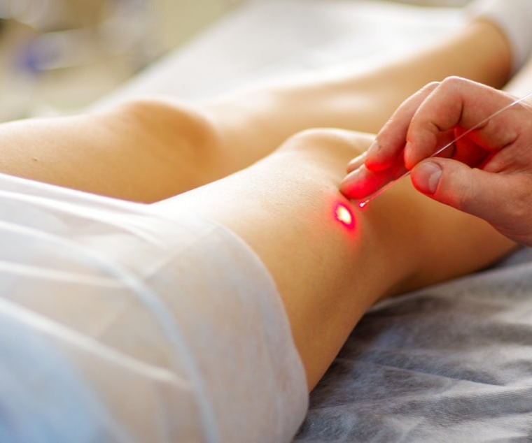 Εφαρμογή Λέιζερ: Ο λέιζερ ενεργοποιείται καθώς η ίνα αρχίζει να αποσύρεται. Η θερμότητα που παράγεται από τον λέιζερ προκαλεί σύσφιξη των τοιχωμάτων της φλέβας, καθώς και το κλείσιμο της.