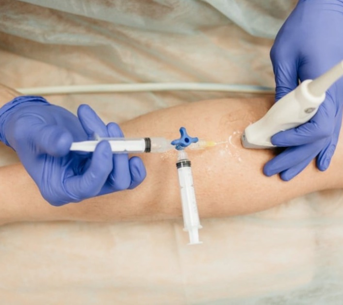 Εφαρμογή του Σκληρυντικού: Ένα υγρό σκληρυντικό εισάγεται σε μικρή ποσότητα απευθείας στην κιρσώδη φλέβα με χρήση μιας μικρής βελόνας.